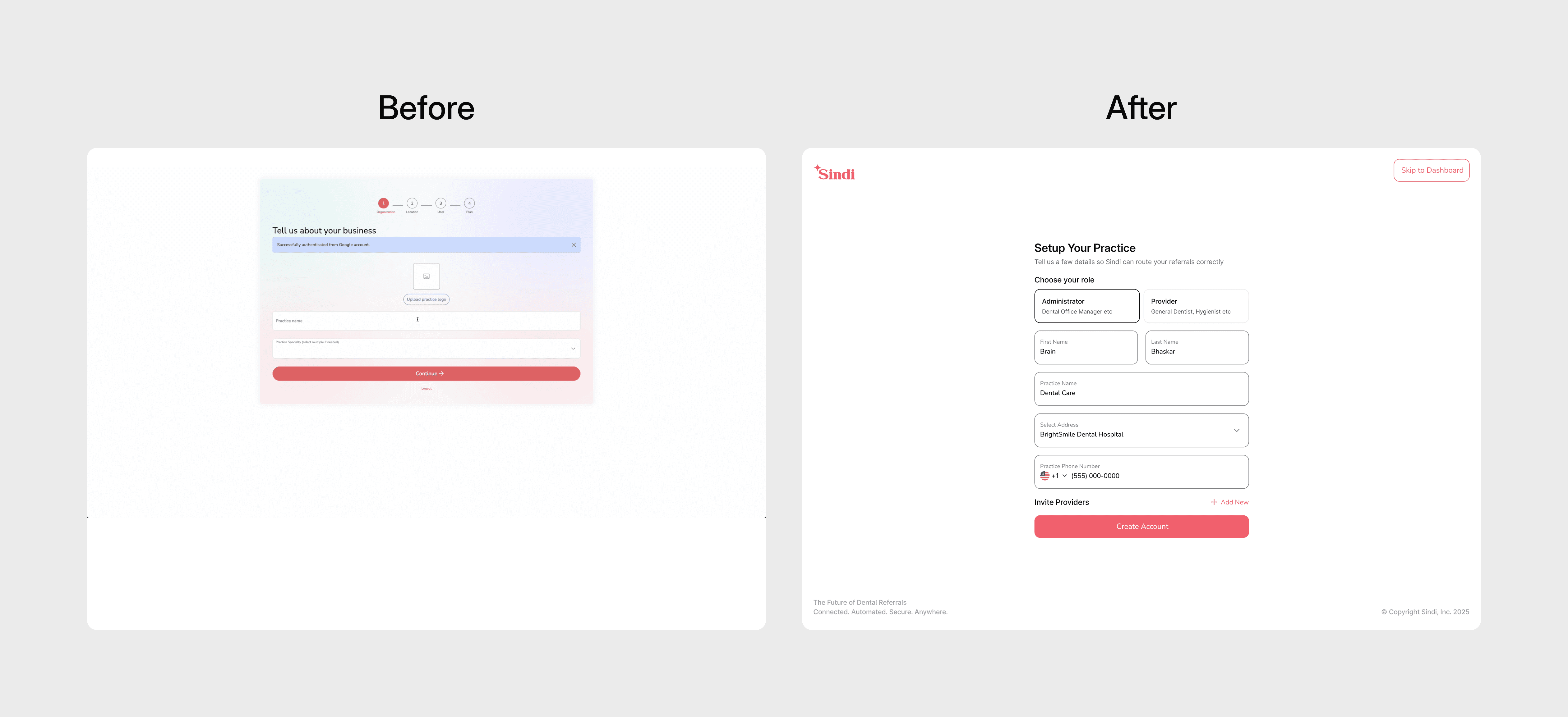 The marketing promise felt “fast + free,” but the actual flow was long : signup → verify email → login again → org → location → user → plan → dashboard. This caused drop-offs, especially for busy clinic staff